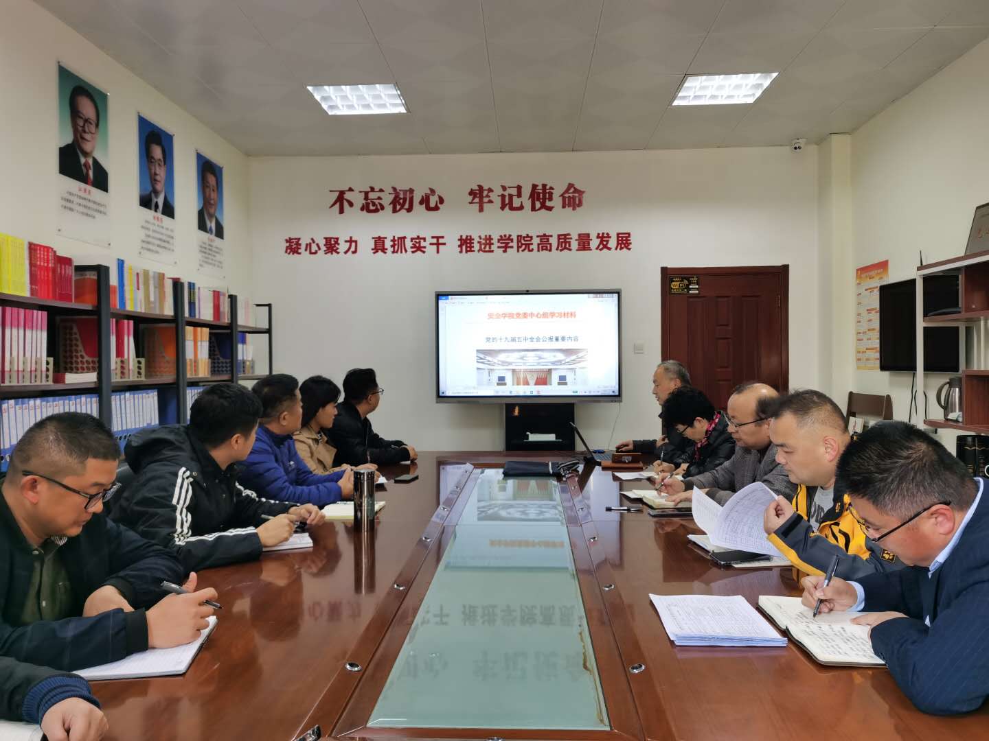 11月4日,成人文学 党委理论学习中心组在J4-309开展集体学习。学院班子成员、党委委员及各党支部书记参加学习,学院党委书记张恩生主讲。