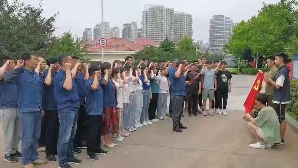 环境工程专业师生中的党员同志和尼布湾污水厂的党员同志一起,在党旗下进行宣誓。党员们面向党旗,举起右手,庄严的向党旗宣誓:“我志愿加入中国共产党,拥护党的纲领……为共产主义奋斗终身,随时准备为党和人民牺牲一切,永不叛党!”慷慨铿锵的誓言,表达了对党的忠诚以及为共产主义事业奋斗终身的决心。胡术刚引用习近平总书记在庆祝中国共产党成立100周年大会上的讲话勉励在场党员,“新时代的中国青年要以实现中华民族伟大复兴为己任,增强做中国人的志气、骨气、底气。不负时代,不负韶华,不负党和人民的殷切希望。”青年学生代表表示:“请党放心,强国有我,这是青年学生的声音,也是我们每一个青年学生向党做出的承诺!”