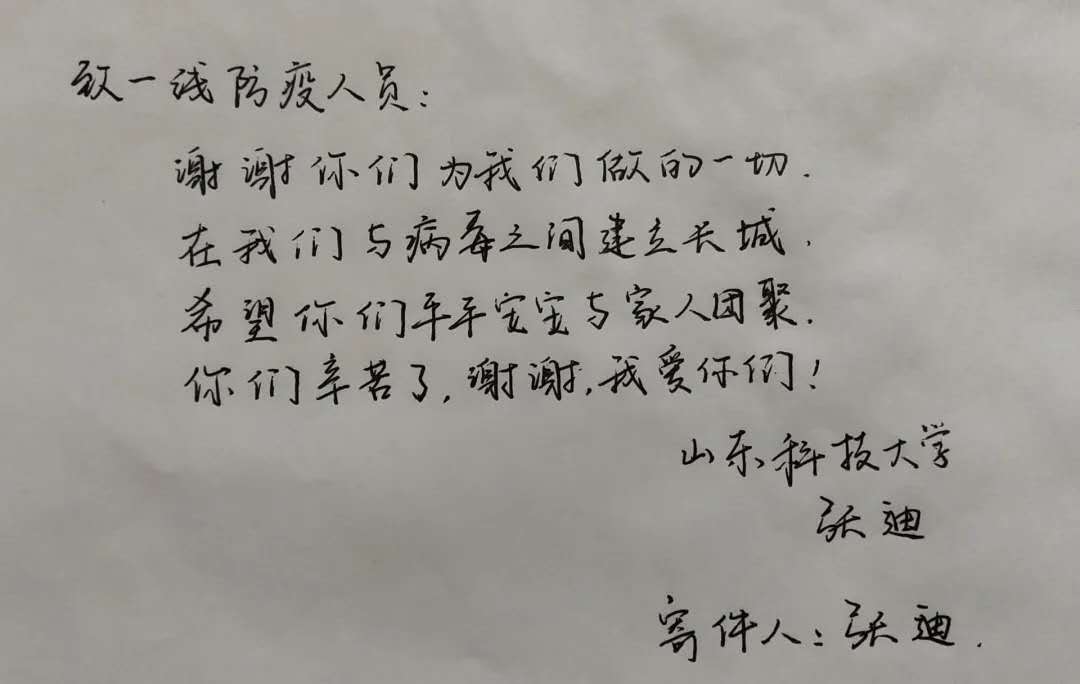 此次线上明信片征集活动共收到手写明信片260余张,部分同学通过手绘明信片的方式表达对“逆行者”的祝福,情感真挚。参与活动的同学们纷纷表示,作为伟大祖国的新青年,我们要胸有大志,肩有大任,行有大德;我们要用读书积蓄力量,用拼搏昭示希望,用科学精神和专业本领守护我们的家园;我们要饮水思源,不忘来路,继承先烈遗志,把悲痛化为力量,为未来共同奋斗。