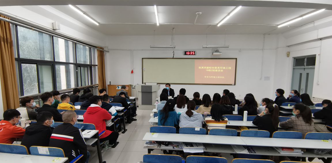 点击:10月15日下午,校党委常委、副校长张英杰在S1-209教室参加联系班级环境工程2018-2班座谈会,和同学们面对面对话交流。