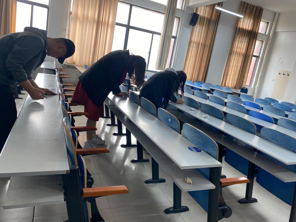 点击:2020年11月1日下午,成人文学 青年志愿者协会在J14教学楼举办“课桌文化”清理活动。
