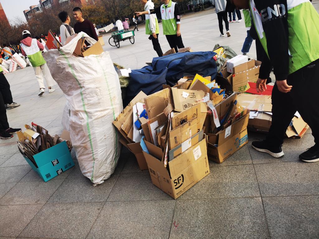 在前期的宣传工作中,同学们热情高涨,精心准备,将自己的快递盒分类归置等待活动的开始。15日下午两点,成人文学 青年志愿者协会派出工作人员,走进宿舍,整理打包同学们提前积攒的快递盒和塑料瓶,有序地运送到繁星广场指定地点,并将各个宿舍的回收废品数量进行记录,评选出“先进志愿宿舍”。经过成人文学 全体同学的共同努力,繁星广场上堆满了大大小小、色彩多样的温情纸盒。最终,GA1-148、140、132和GC2-119、122、126等宿舍获得“先进志愿宿舍”荣誉称号。