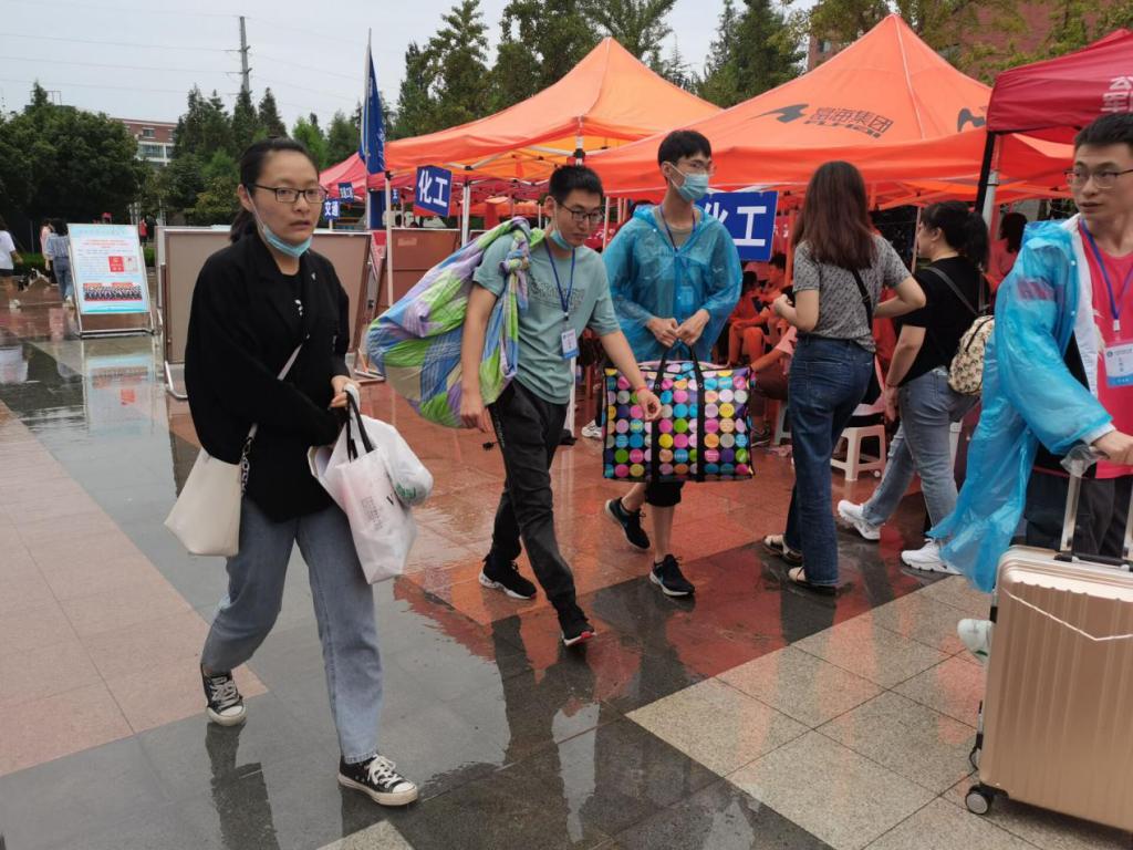 秋雨连绵,浇不尽迎新志愿者的满腔热情,车站、校门口、摆渡车、报到处、新生宿舍区......志愿者们在秋雨中坚守岗位,形成了一道迎接新生的“流水线”。火车站、汽车站,志愿者们高举学校标牌,引导新生登上直达学校的大巴车;学校南大门,志愿者们细心查验健康码、核酸检测证明;摆渡车停车区,志愿者们手持扩音器、学院标牌,引导新生到达注册登记处;入学注册登记现场,志愿者们细心询问新生信息,办理入学手续、分发专业指导手册;红顶帐篷下,学院领导老师们耐心地为新生解疑答惑。为了不错过每一个新生,志愿者们清晨五点起床,匆忙就餐,六点准时集合,午饭在帐篷内解决,时刻关注着新生报到情况。志愿者们说:“很累、很辛苦,服务组的要帮忙搬行李,经常是在报到处和寝室楼来回跑,虽然很累,但很有意义,这也是成人文学 精神的传承。当听到学弟学妹们真诚的说一声“学姐”、“学长”,觉得再苦再累,也是很快乐的,也是值得的。”