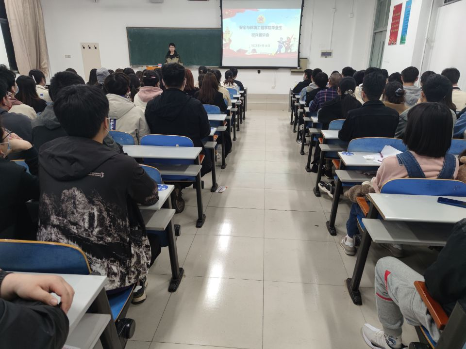 点击:4月14日,成人文学 于J14-408、J14-410举办毕业生应征入伍宣讲会。2018级辅导员郭熙主持宣讲会,2018级全体学生参会。