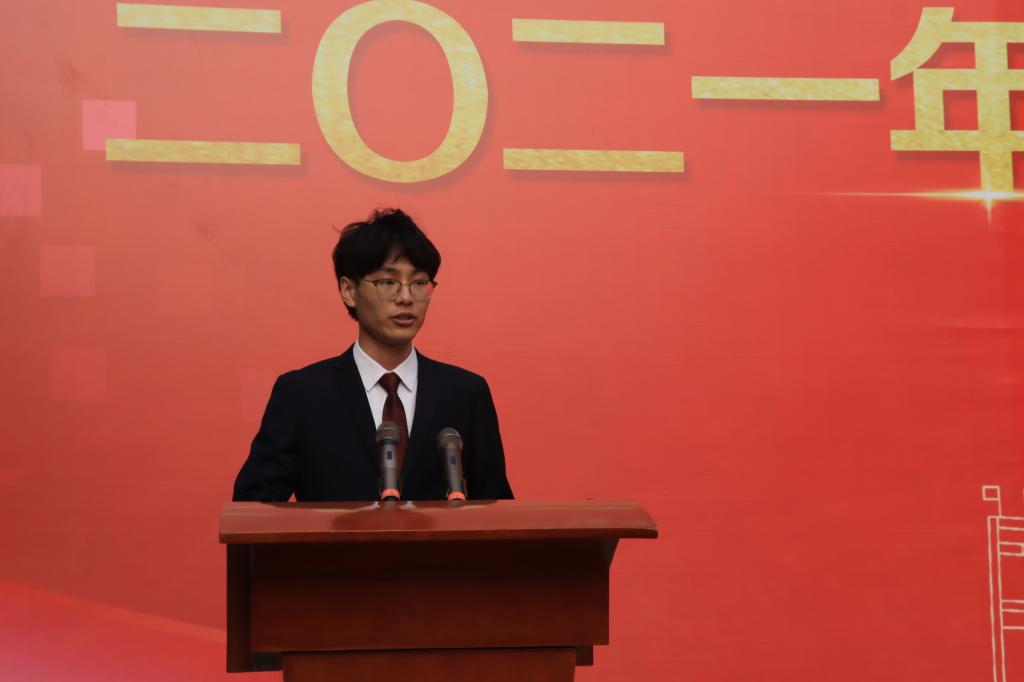 学院十大优秀学生刘立超作为学生代表发言,他结合自己的科创经历分享了“追梦”的旅程,他生动地讲述了自己如何从开始的自卑迷茫到选择科创,再到后来获得全国比赛一等奖。他认为,成功没有捷径,坚持与奋斗才是不断成长进步的推助剂。同时他鼓励同学们要积极参与到“领才工程”中来,坚定信心,努力奋斗,找到属于自己的舞台和道路,共创学院美好的未来。