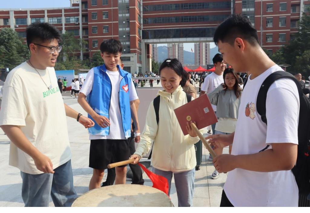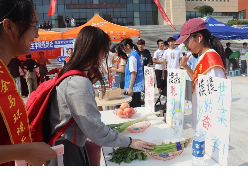 在迎新现场,学院为新同学的到来营造了满满的仪式感。铿锵有力的鼓声伴着欢声笑语在成人文学 迎新处蔓延开来,寓意安全学子们一鼓作气,以昂扬的斗志向求学征程出发。“摸摸苹果,平平安安;摸摸大葱,聪明伶俐;摸摸芹菜,勤奋好学”。“时光信箱”鼓励新同学写下自己的未来寄语。定制刮刮乐为新同学送上入学礼品……新同学们充分感受到来自学院的温暖。