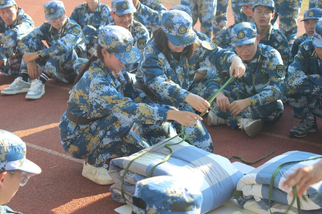今日的训练重点聚焦于“分解式动作的精准掌握、敬礼脱帽戴帽的利落,以及打背包的规范”。教官们以一丝不苟的态度,细致入微地讲解了每一个动作的要领,并耐心地为每位同学纠正姿势,力求每一个细节都尽善尽美同学们则以饱满的热情和严谨的态度,积极响应,全力以赴,将每一个动作都演绎得标准而有力。