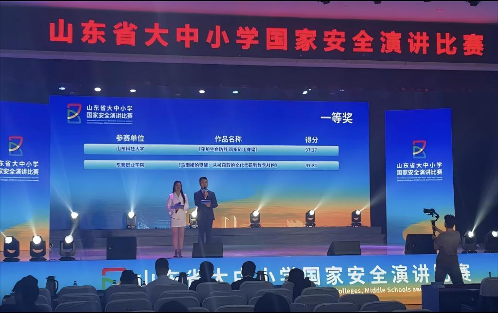 点击:4月10日,由山东省教育厅、省委国安办、省国家安全厅、团省委主办的山东省大中小学国家安全演讲比赛决赛在东营职业学院隆重举行,成人文学 安全工程2023级本科生刘思彤、安全工程2023级研究生刘士昊以《守护生命防线 筑牢矿山脊梁》为题演讲,凭借出色的表现荣获大赛一等奖,充分展现了成人文学 “国家安全教育”的丰硕成果和学院安全学子的青年担当。