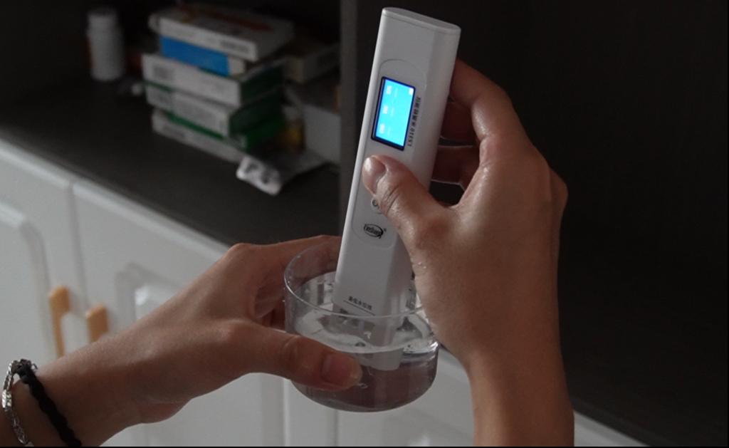 实践团利用便携式水质检测设备进行采样分析