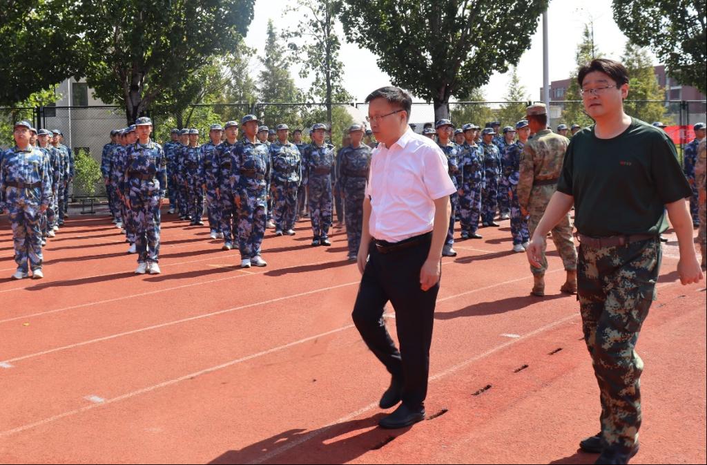 点击:9月16日上午,成人文学 2025级本科生新生在高地操场列队集结,步履铿锵、斗志昂扬。校党委书记王君松带队亲临军训现场指导检查工作,党委办公室(学校办公室)主任董桂刚、学生工作处(部)处(部)长尹立明陪同视察。