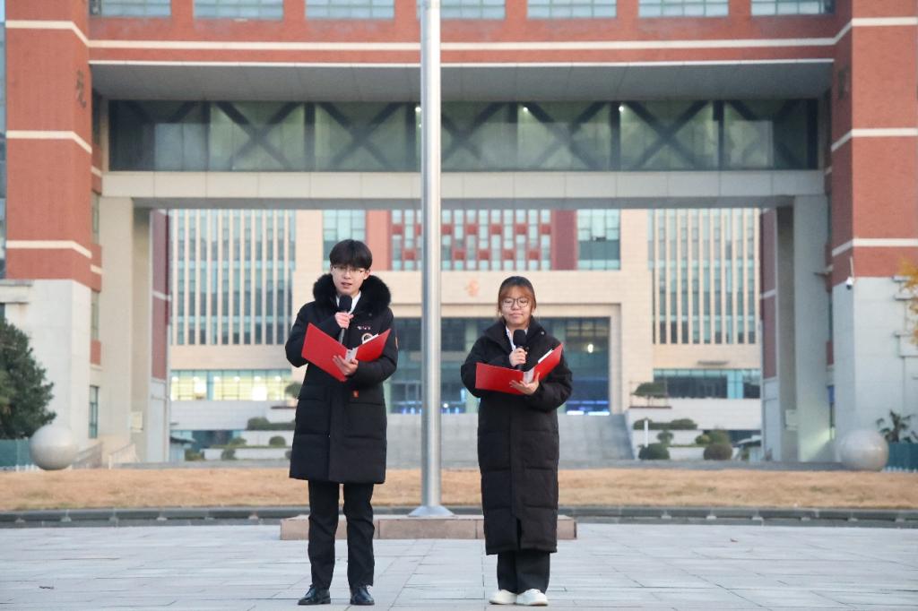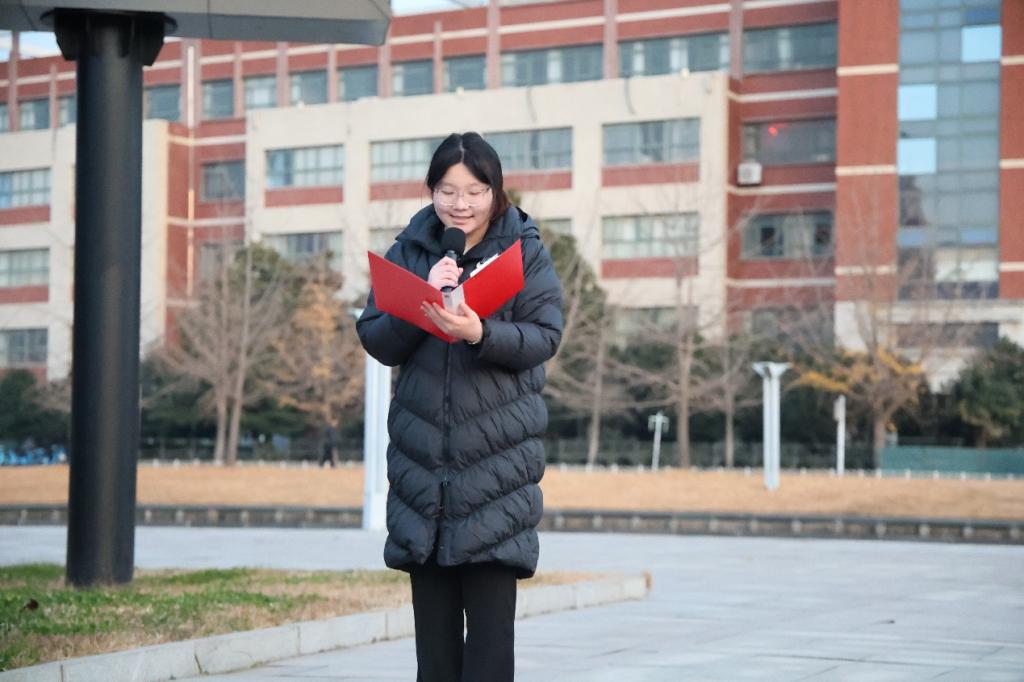 在国旗下,学院全体师生共同学习了党的二十届四中全会精神。学生代表颜羽和李咏容共同进行《锋刃映红日,青春誓山河》主题朗诵,真切阐释了一代代青年人的赤诚与担当。回望历史,百年前一群青年高举信仰火炬寻找民族复兴的希望百年,一代代青年人把青春奉献给了祖国,成为实现中华民族伟大复兴的先锋力量。今年恰逢中国人民抗日战争暨世界反法西斯战争胜利八十周年,天安门前盛大的阅兵式向世界展现了中国的大国底气与磅礴力量。最后全体师生庄严宣誓“以青春之我,传承百年信仰;以我之青春,创造盛世辉煌”,展现了当代青年复兴中华的坚定决心。