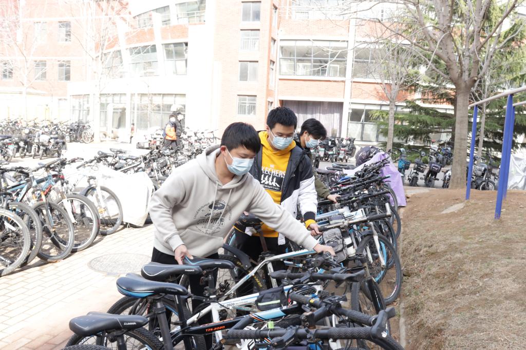 3月26日,青年突击队正式集结完毕,并立即组织队员进行清扫垃圾以及规范摆放车辆的活动,从源头上建立卫生屏障。队员们分批行动,在A1、A3和C2、C4公寓楼下同时进行。一队负责将违规摆放的车辆进行搬运和整理,另一队则负责宿舍楼前落叶垃圾打扫清理。活动中,队员们态度积极,不怕脏,不怕累,拿着事先准备好的清洁工具,俯下身、弯下腰、认真扫、彻底清,对道路上、停车区域等边边角角的垃圾进行了集中清理并对车辆进行了规范摆放。整个过程,队员们认真仔细、不留死角,确保清洁彻底,手中的扫帚不仅扫走了宿舍楼前的垃圾,也扫去了疫情的阴霾。他们朴实无华,更是沉默无言,虽然不是抗疫一线的战士,却在另一条战线上默默贡献着自己的青春力量。