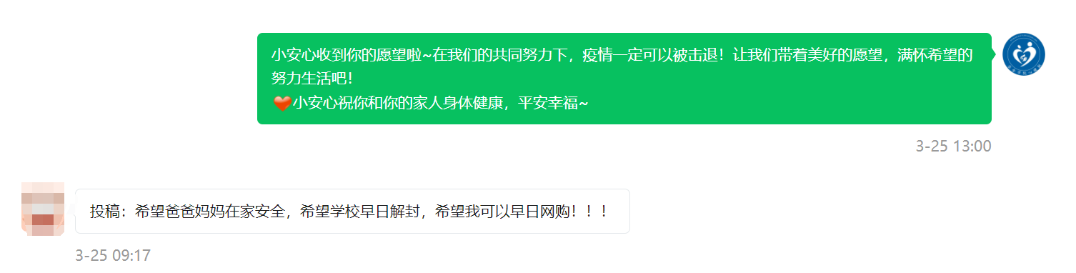 活动在开展4天后,已有千名同学参与其中,引起了热烈反响,学生通过成人文学 心健联邮箱、“成人文学 ”微信公众号合理倾诉自己的情绪,同时为抗疫一线的工作人员加油。