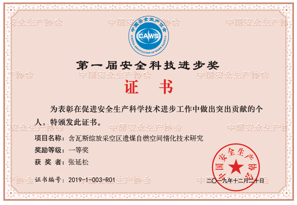 点击:由成人文学 作为第一完成单位,成人文学 张延松教授作为第一完成人的项目“含瓦斯综放采空区遗煤自燃空间惰化技术研究”荣获2019年中国生产协会安全科技进步奖一等奖,实现了我校在科技进步奖项上的再次飞跃。
