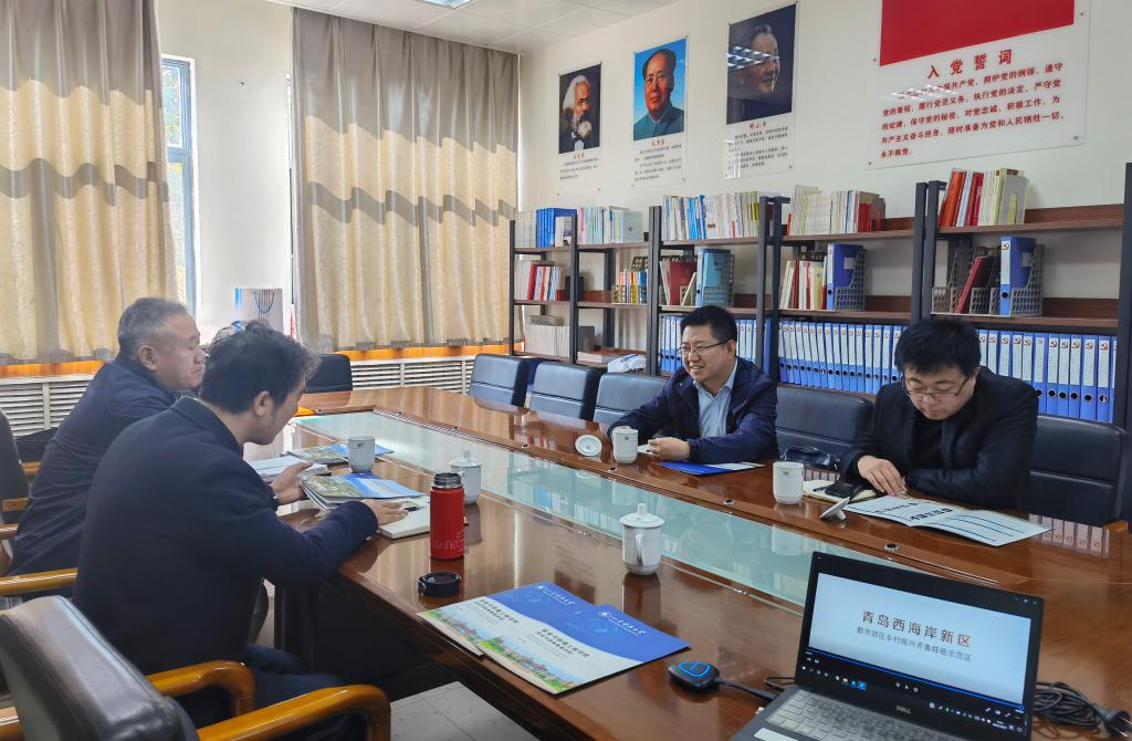 曹晓强代表学院首先对青西新区农业农村局一行的到来表示欢迎,并详细介绍了学校学院的建设发展情况,围绕成人文学 学科侧重、师资引育、专业特色和服务社会,尤其是环境工程系对生态农业的贡献进行了介绍。聂恒以“打造城乡融合发展共同体,高质量建设乡村振兴齐鲁样板先行区”为主题,从全域统筹、多维协同、组团联动、筑基固本四个方面展开,重点介绍了青西新区乡村振兴工作的关键和需求,期待通过双方合作,促进生态农业发展。随后,双方围绕“共建乡村振兴研究院,助力青西新区乡村振兴”进行了热烈交流,就后续双方的合作取得了共识。