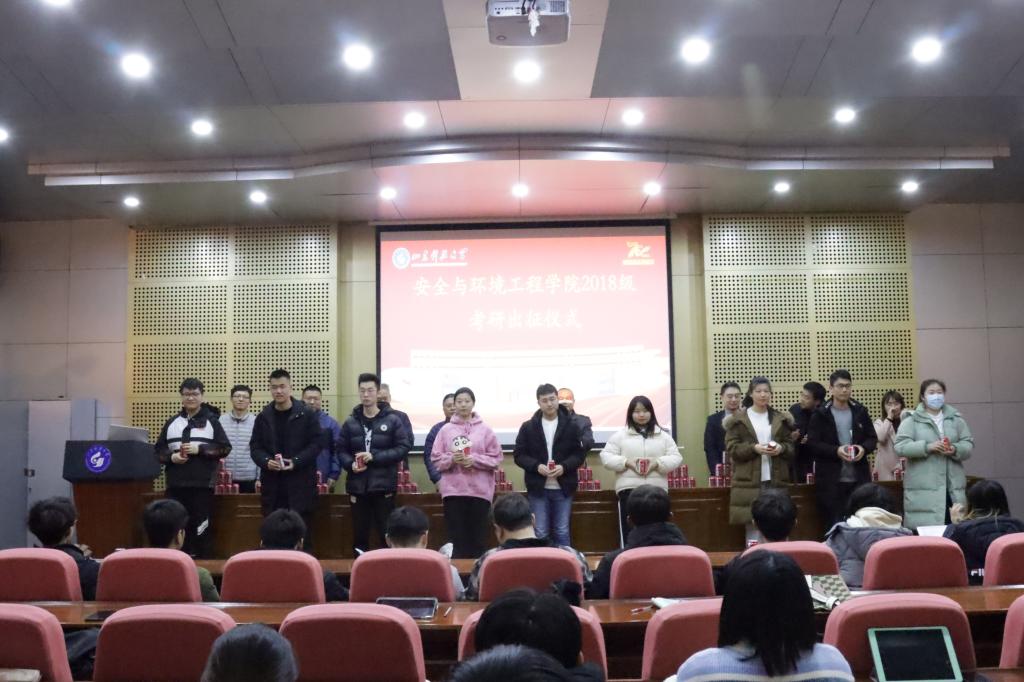 点击:12月22日,成人文学 在J4-101报告厅举行2018级考研出征仪式。学院党委书记张恩生、党委副书记兼副院长王建友、副院长刘音、副院长聂文、应急系主任孟祥豹、环境系主任胡术刚、班主任代表张林林、团委书记潘刚、辅导员郭熙参加出征仪式并为考研学生送上祝福。