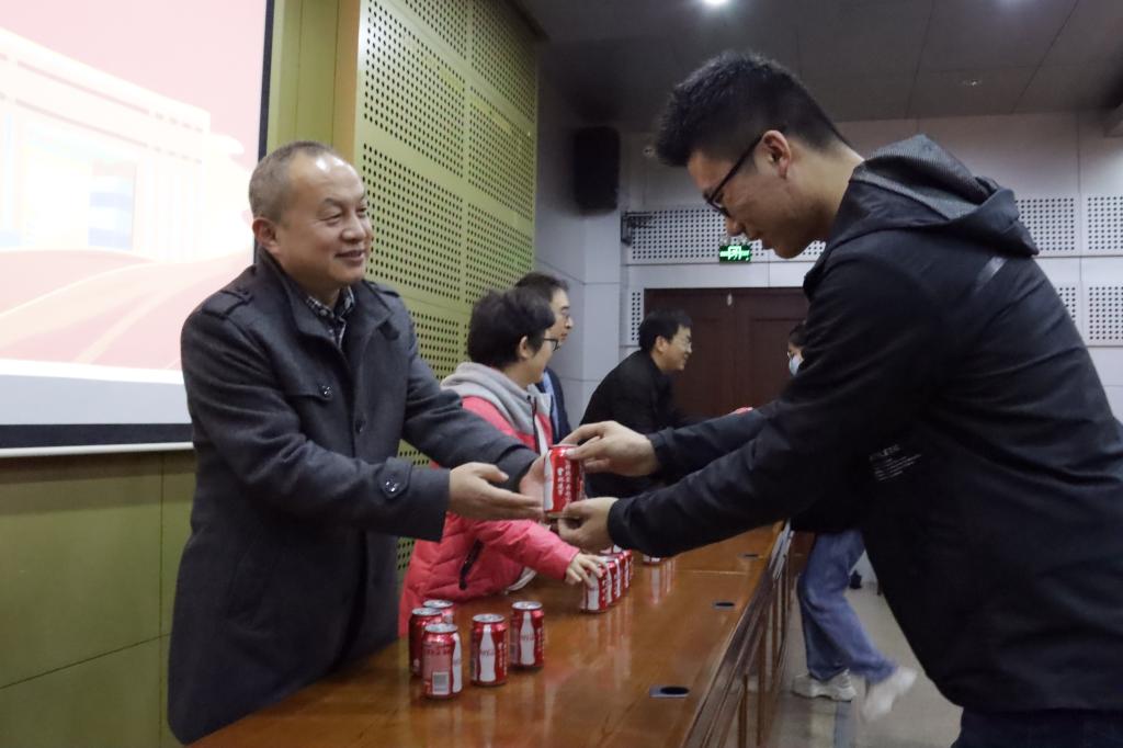 “都说考研之路是一个人的奋战,是孤独的。可我从不觉得,我身后一直有老师的鼓励和学院的帮助,专属胸牌和刻有名字和祝福的可乐简直是buff加持了!”2018级考研学生李辰童说道。