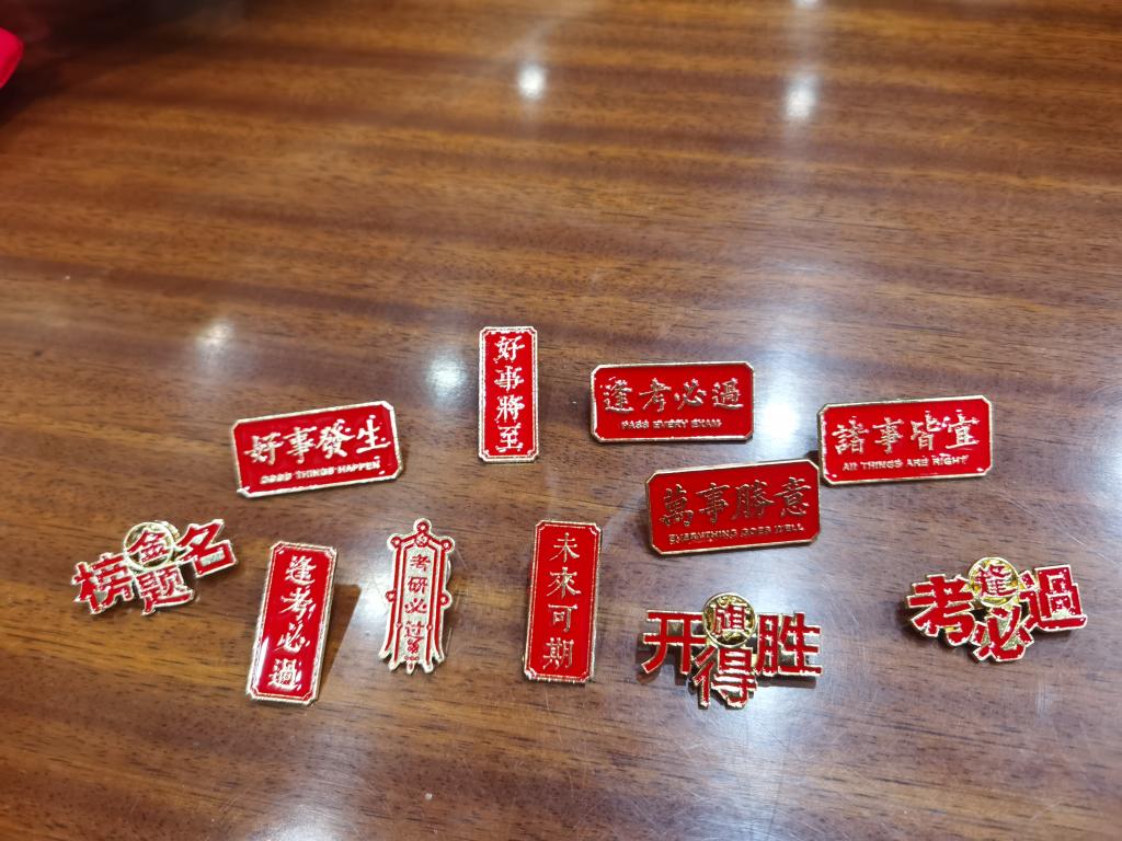 每一罐私人定制可口可乐外表都雕刻着考研学子的姓名和专属励志金句,考试可口、成绩可乐,独一无二的金句激励着他们以昂扬斗志迎接考研“战役”;“考研必过”、“旗开得胜”、“金榜题名”、“逢考必过”……小小福袋里装满了老师大大的祝福,佩戴在胸前的专属定制胸牌载满了学院独一无二的期待。