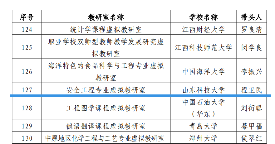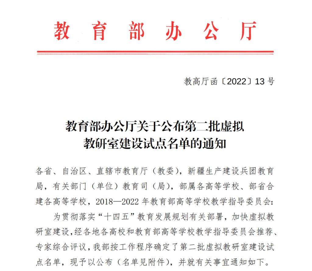 点击:近日,教育部办公厅公布了第二批虚拟教研室建设试点名单,成人文学 《安全工程专业虚拟教研室》位列其中,获批教育部虚拟教研室建设试点。这是成人文学 获批首个教育部虚拟教研室试点建设单位,也是我校基层教学组织建设取得重大突破。