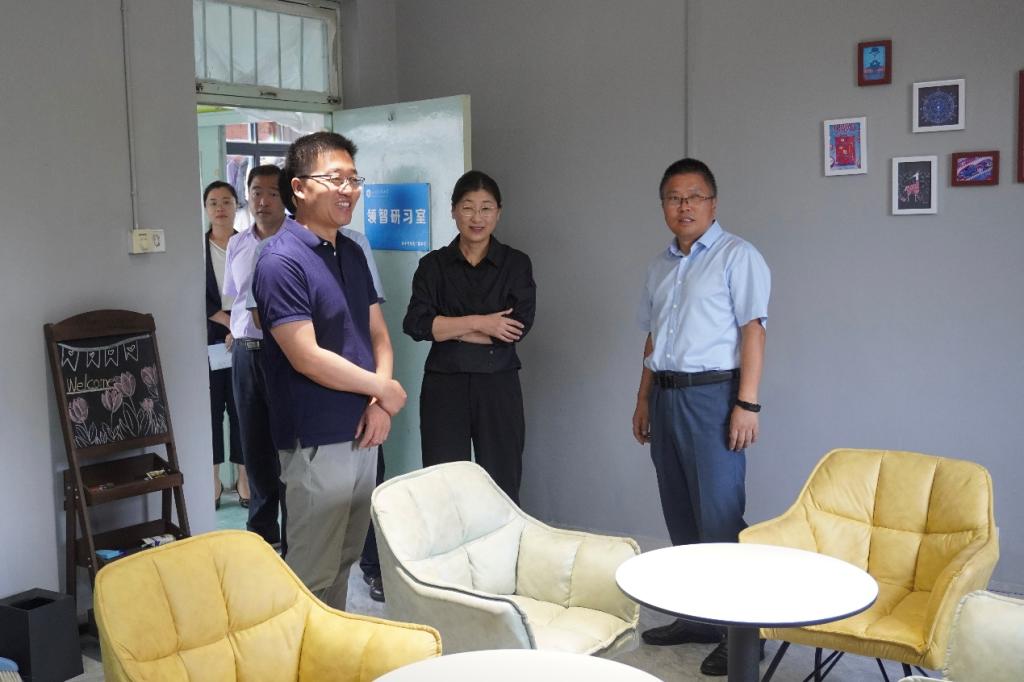 点击:9月21日,山东省教育厅思政处处长陈成标一行来成人文学 走访调研“一站式”学生社区建设工作。学校学工处(部)处(部)长王震、副处(部)长朱景星、靳凯,成人文学 党委副书记兼副院长王建友参加调研。