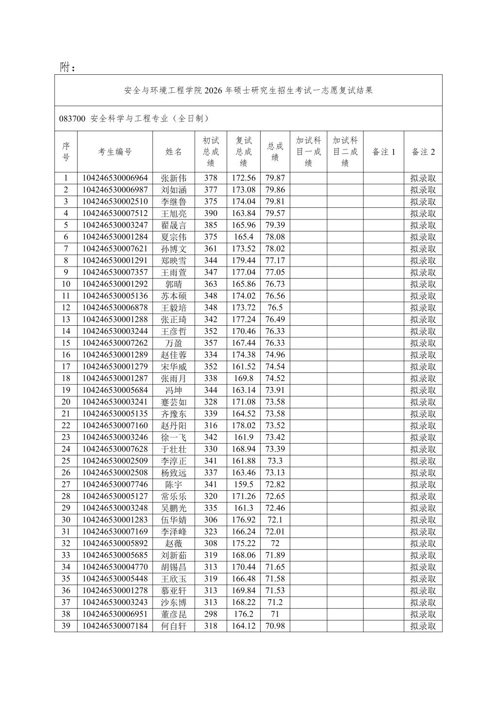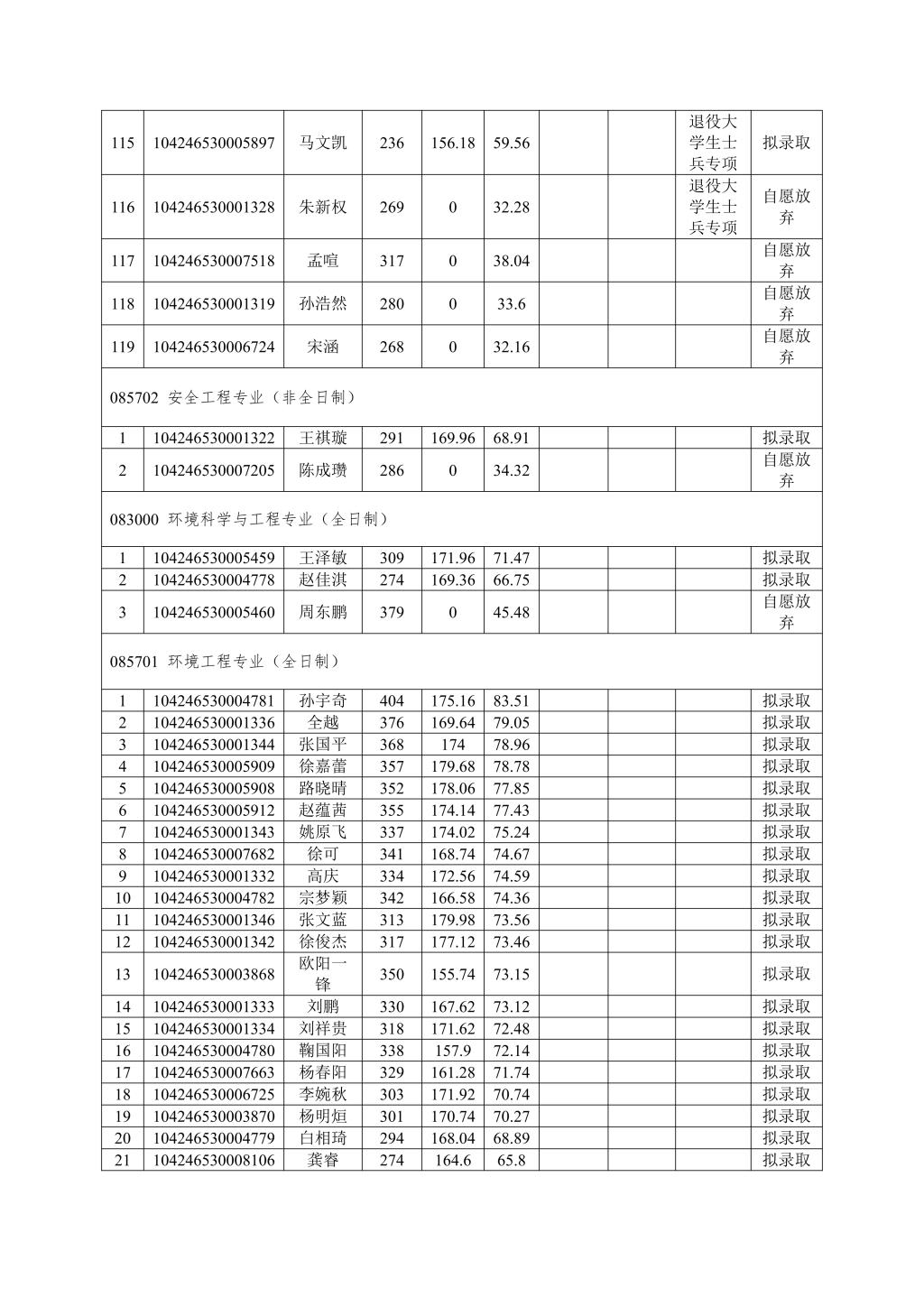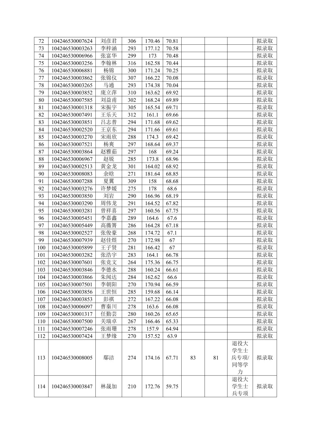 成人文学 按照学校下达招生计划进行拟录取,若后期学校调增计划或公示名单中拟录取考生自愿放弃,将按照总成绩从高到低顺次进行待录取,并另行公示。最终拟录取名单由学校研究生院进行统一公示。