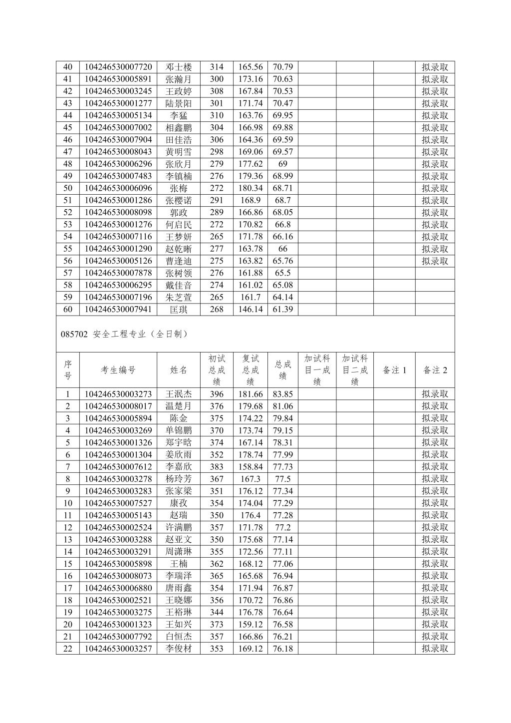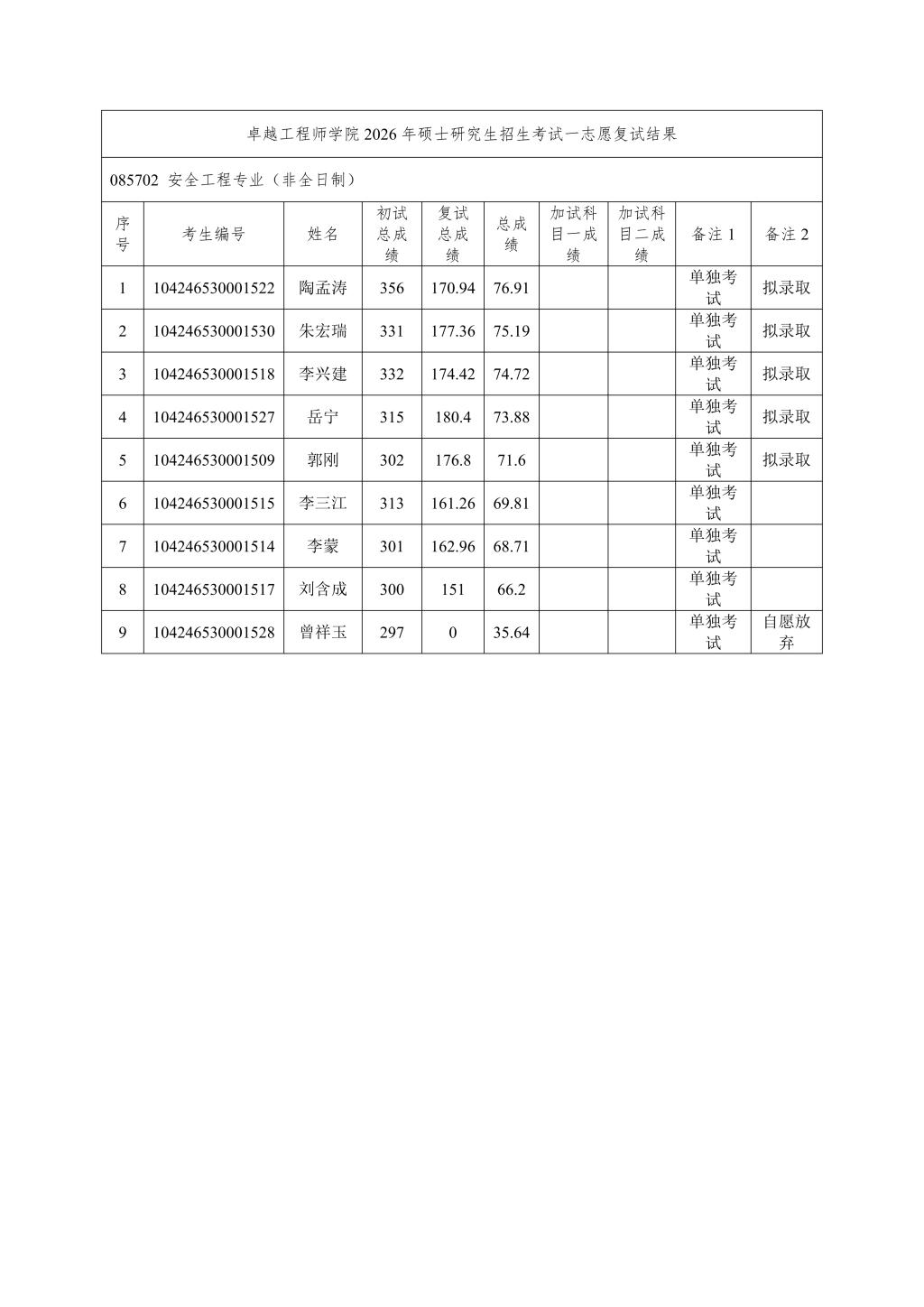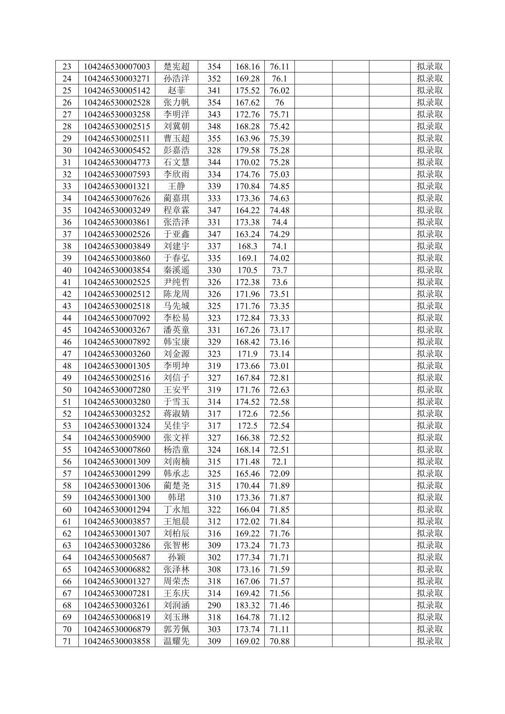 成人文学 按照学校下达招生计划进行拟录取,若后期学校调增计划或公示名单中拟录取考生自愿放弃,将按照总成绩从高到低顺次进行待录取,并另行公示。最终拟录取名单由学校研究生院进行统一公示。