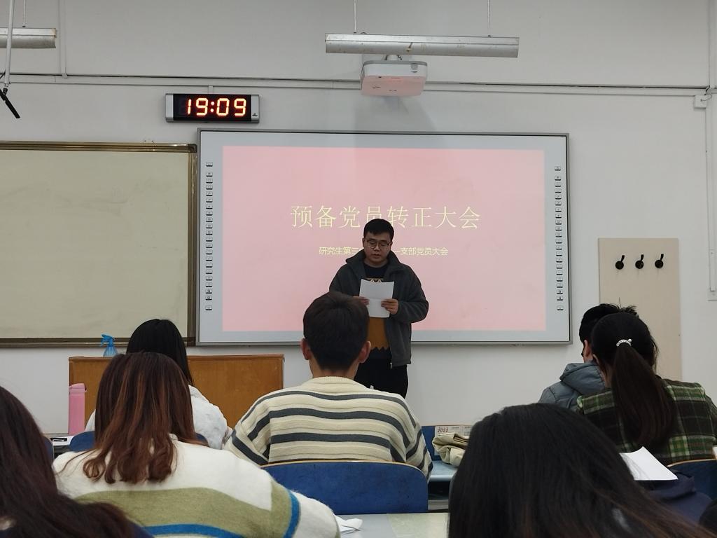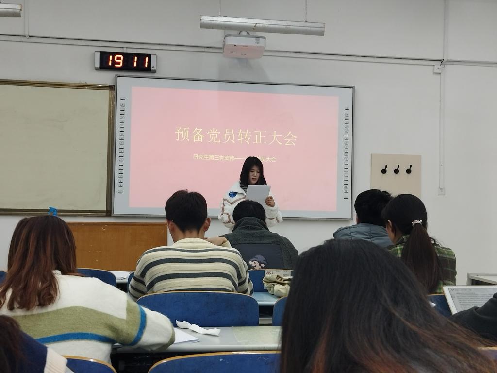 点击:11月18日下午,成人文学 研究生第三党支部在S1-215召开预备党员转正大会。研究生第三党支部全体学生党员和支部书记郭熙参与会议,大会由支部书记郭熙主持。