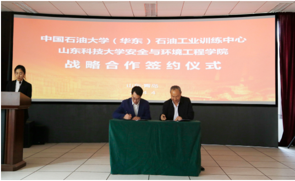 参观结束后,双方在中心报告厅开展座谈交流,并举行战略合作协议签约仪式。党委书记张恩生、中国石油大学(华东)石油工业训练中心主任刘振东代表双方签署了战略合作协议。张恩生表示,工训中心在实践教学改革、仿真资源建设、创新创业教育等方面成绩突出,希望双方以此次交流签约为契机,联合成立交流工作组,建立定期研讨机制,在组织建设、课程改革、科研转化、师资提升等方面进一步深化合作,以促进双方在教学科研领域的共同发展。