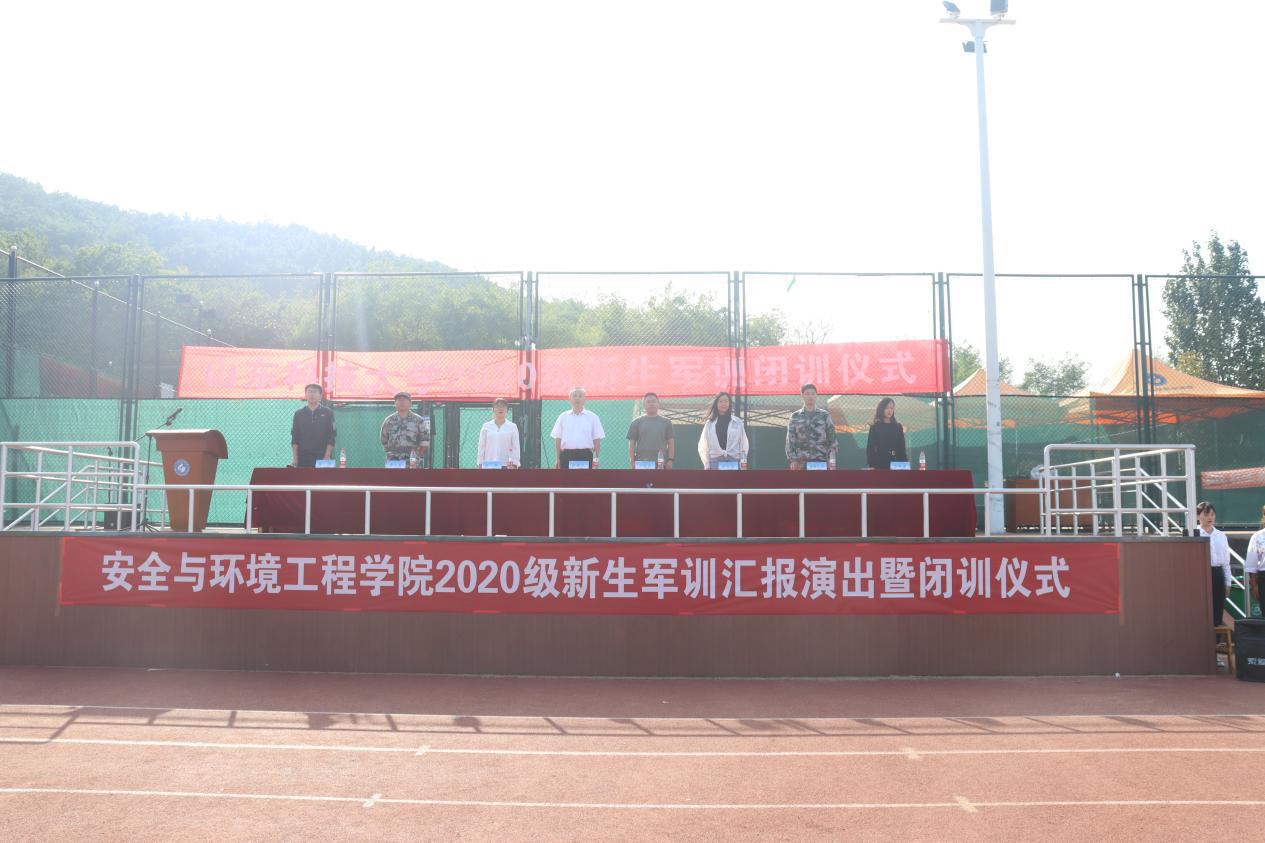 学院党委副书记兼副院长王建友宣读了军训优秀班集体和个人名单并颁发荣誉证书。安全工程2020-1班、安全工程2020-4班、环境工程2020-2班获军训优秀班集体称号,邴誉娴等同学获军训优秀个人称号,吴广安、宋继斌、魏宏钊获军训优秀教官称号。
