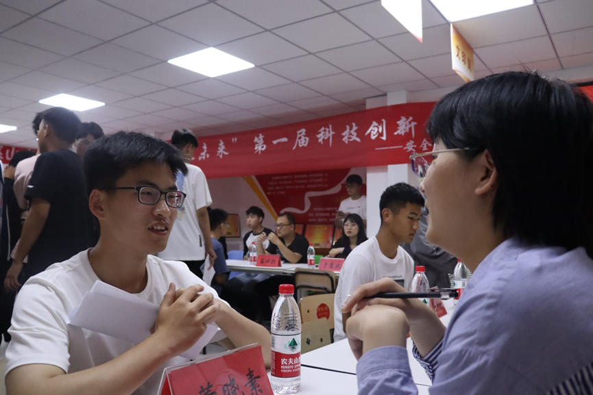 本次双选会有百余名学生参加,十余个科技创新团队与学生面对面交流。双选会现场气氛热烈,科技创新团队介绍团队负责项目,并为同学们解答有关科技创新与专业知识方面的疑惑,学生们在自己心仪的老师前踊跃自荐,并就个人意向、科创规划等问题与团队负责人深入交流。不少学生在双选会现场“配对”成功,并加入了自己感兴趣的团队。