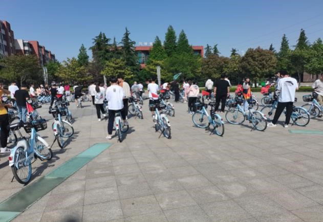 本次活动在尤洛卡广场举办,吸引了成人文学 与经管学院各年级近百名同学的积极参与。活动进行了“碳中和知识竞答”预热环节,限时3分钟,竞答过后,活动参与者跟随成人文学 学生会副主席陈国卫,为此次绿色文化节顺利召开送上了诚挚的祝福。参与活动的同学们骑上共享单车,手握小红旗和红色气球挂件,穿行过一个个采访点,感受低碳出行的魅力。本次活动,旨在通过共享单车绕校园的低碳骑行之旅,领悟碳中和环保在我们身边,倡导简约适度,绿色低碳的生产生活方式。