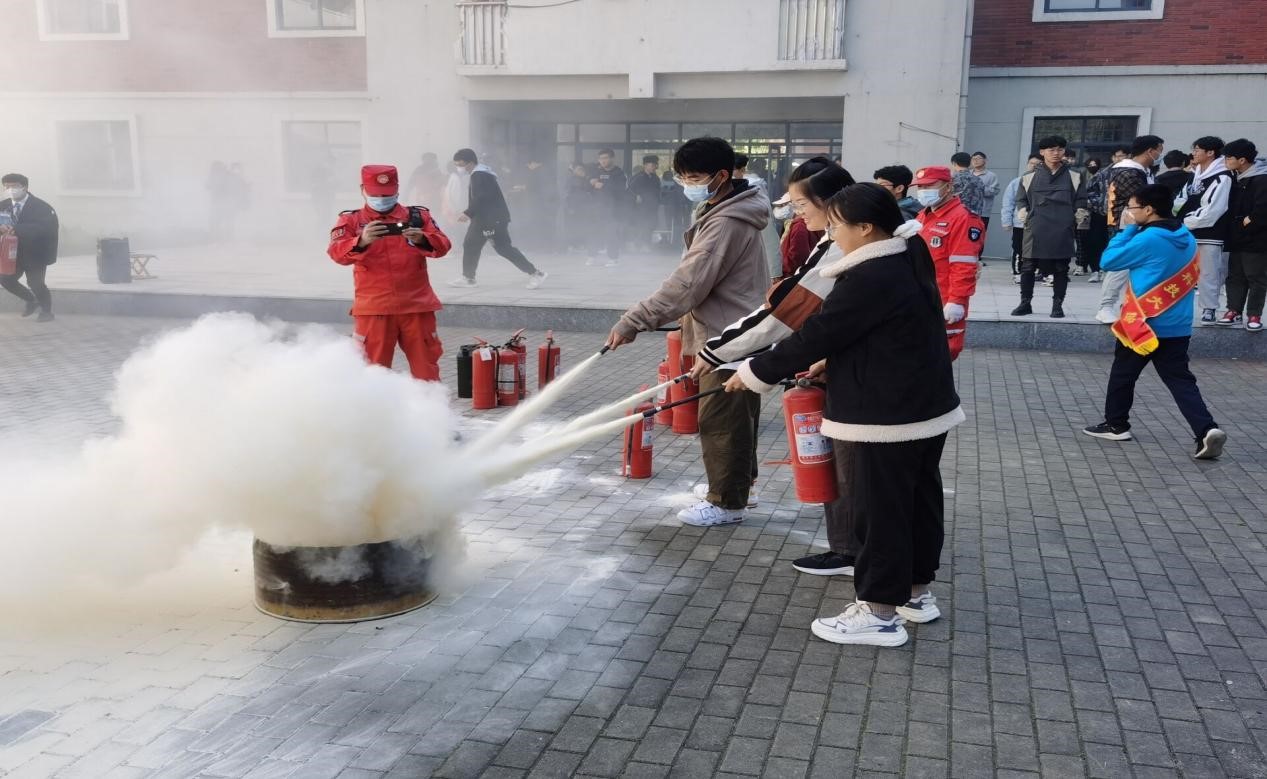 活动伊始,校安管会以及自律会部长向同学们介绍了本次活动的目的和重要意义。随后,消防员们详细地讲解了干粉灭火器的使用方法、拿握方式以及灭火要点,并现场操作,展示操作细节和注意事项。在互动环节中,消防员组织同学们用灭火器进行灭火实操练习,大家踊跃参与其中,将火桶里的火焰灭掉,当了一次“小小消防员”。活动最后,为使同学们将消防知识牢记于心,现场进行了关于消防知识的有奖问答,在轻松愉快的氛围中,提升了学生在突发事件中的应变能力,为安全校园的创建夯实了基础。(时林超 沈州)
