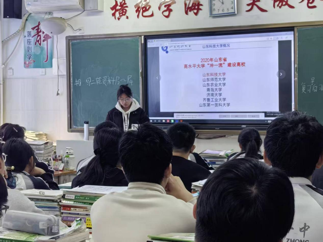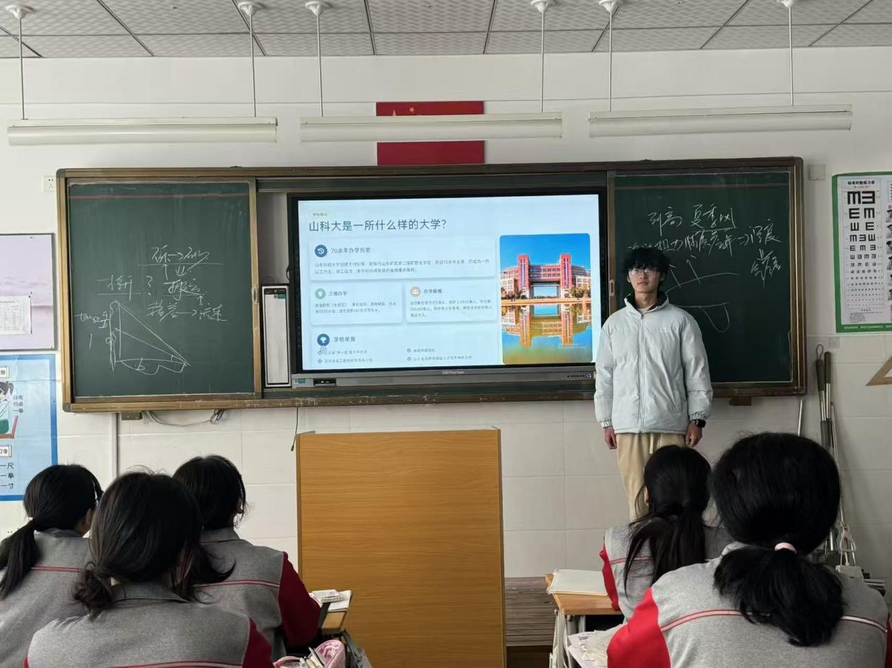站在高中母校高三的讲台前,望着台下那些熟悉又陌生的面孔,我的思绪被拉回半年前——那时我也像他们一样,对“大学”既憧憬又忐忑。如今,作为成人文学 的大一新生,我带着“我为山科代言”的任务回到了平邑曾子学校。