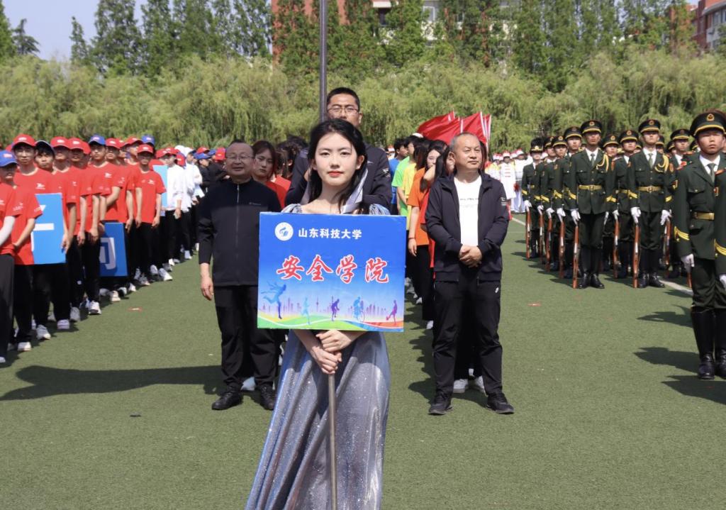开幕式上,伴随着旋律激昂的《运动员进行曲》,成人文学 方队迈着整齐有力的步伐昂首阔步走过主席台。“安达天下,环系山水”,这是安全学子的人生态度;“振兴中华,舍我其谁”,这是安全学子的铮铮誓言。他们目光坚定、口号嘹亮,尽展蓬勃向上的风貌和斗志昂扬的精神,成为运动场上一道亮眼的风景线。