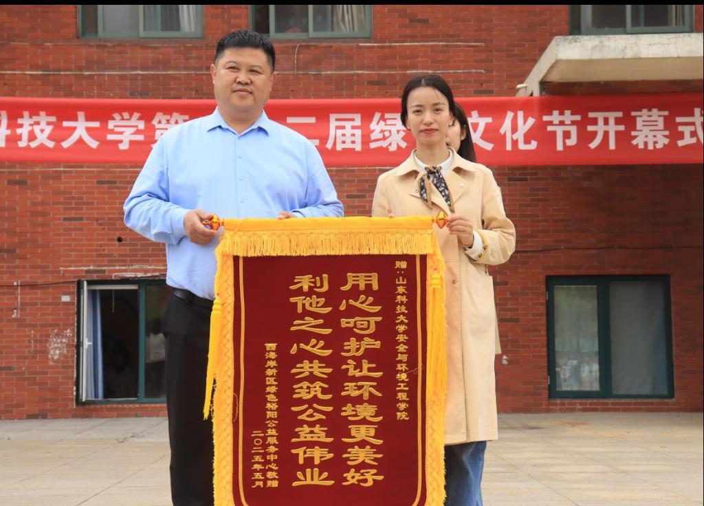 李茹佳充分肯定志愿者们在社区垃圾分类、低碳改造等环保实践中的创新成果,表示社区将与学校学院持续推动“校社育人”机制落地生根,传递志愿精神,以行动践行绿色使命。裕阳公益党支部书记宋龙港为成人文学 颁授锦旗。