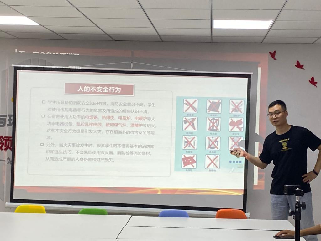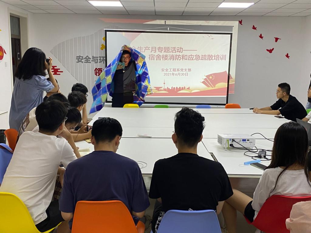 为深入贯彻习近平总书记关于安全生产系列重要指示精神,进一步加强校园安全宣传教育工作,作为安全生产月专题活动的重要环节,6月30日,安全工程系党支部深入学生宿舍,并由支部书记孙路路与支部委员贺敏、于海明组织学院2020级宿舍长开展“宿舍楼消防和应急疏散培训”。