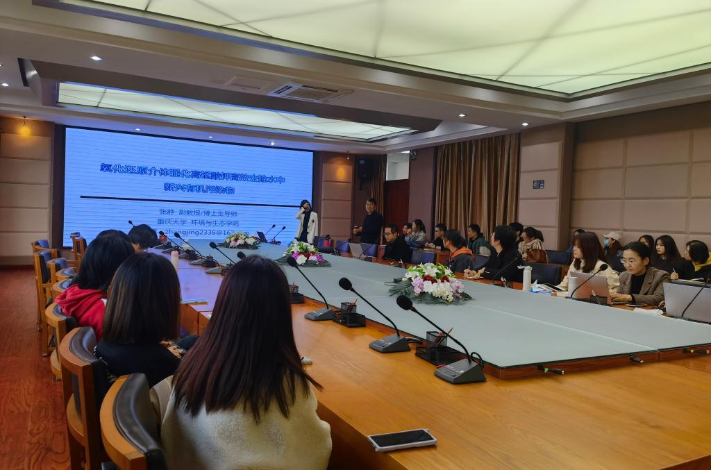 报告会上,张静副教授以新型有机污染物的来源与归趋为研究背景,以氧化还原介体强化高锰酸钾高效去除水中新兴有机污染物为主题,主要讲述了金属、非金属、氨氮化合物、酚类以及小分子有机酸等氧化还原介体强化高锰酸钾氧化工艺,揭示其强化机理,为含有天然有机物的地表水和地下水水质净化提供新的理论指导。报告会后,张静副教授与师生展开了热烈的讨论,对老师和同学们提出的问题进行了一一解答。