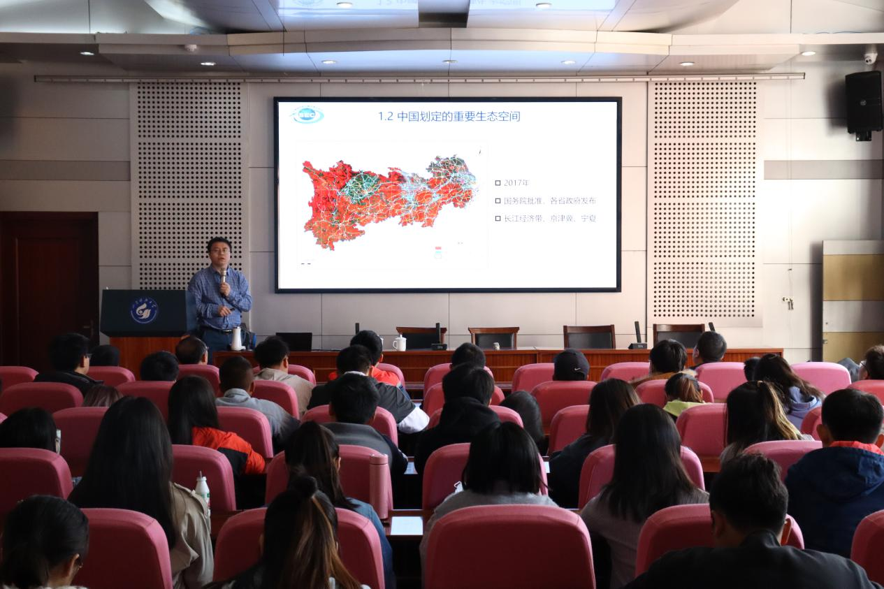 侯鹏从国家重要生态空间的现状、国家生态空间管控的主要政策、国家生态监管业务化技术支撑体系三个方面进行了阐述。首先对我国以国家公园为主体的自然保护地体系进行分析,并指出自然保护地是生态文明建设的核心载体;其次,通过讲述我国生态文明从萌芽到日渐成熟的发展过程,展示当前生态文明建设工作已经取得的阶段性胜利;最后,就定期遥感对自然保护区生态状况监测成效做了评估。本次报告会既高屋建瓴,又纲举目张,既有宏观层面的政策解读,又有实操层面的案例分析,深入浅出,图文并茂,生动形象,对成人文学 环境专业的学习和工作具有很强的指导意义。侯鹏号召同学们要学以致用,将理论与实践融合,在七十年校庆到来之际,继续开拓创新,谱写学院与学校的新篇章!(郭熙 刘方冬)