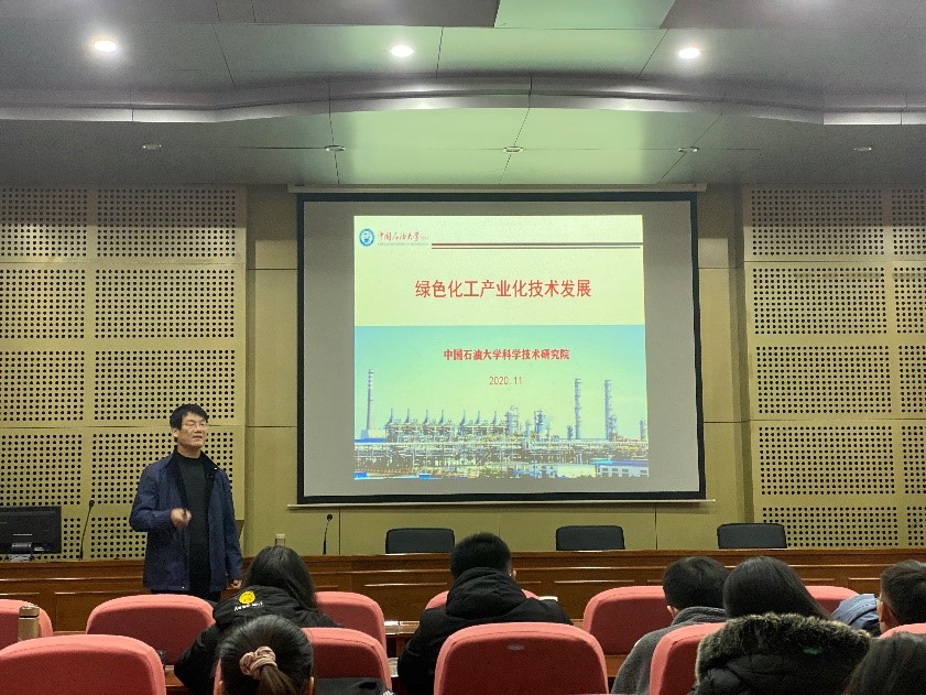点击:11月28日下午16:30-18:00,中国石油大学科学技术研究院蔺爱国研究员受邀在J4-101报告厅作学术报告,报告主题为“绿色化工产业化技术发展研究”。报告由成人文学 副院长曹晓强主持,学院百余名师生到场聆听了本次报告。