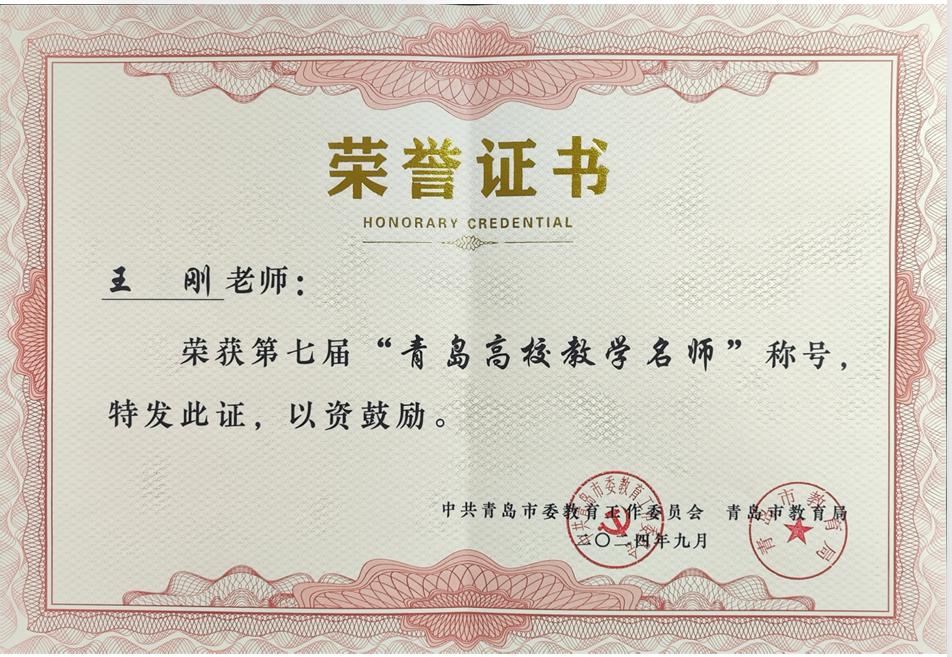 点击:近日,中共青岛市委教育工作委员会、青岛市教育局公布第七届青岛高校教学名师授奖名单,成人文学 王刚教授获“第七届青岛高校教学名师”荣誉称号。