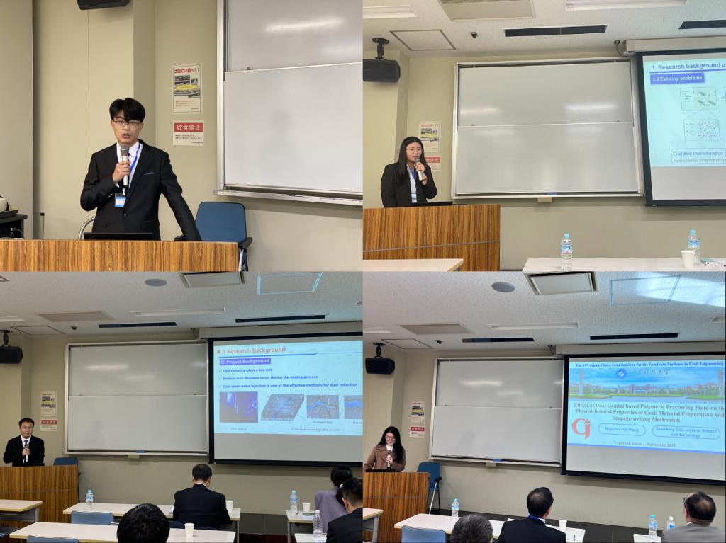 点击:11月24日至27日,学校科技处副处长孙开师、成人文学 副院长聂文、矿山灾害预防控制实验室副研究员张学朋带领学校14位博士、硕士研究生赴日本长崎大学参加“第五届中日土木工程研究生研讨会(The 5th Japan-China Joint Seminar for the Graduate Students in Civil Engineering)”,本次研讨会由成人文学 、日本长崎大学和同济大学联合主办,会议主题涉及土木、安全、环境等多个领域。其中成人文学 牛文进、刘金迪、解树亮、王琪、董浩、程煜、李秋月7名同学参会并分别作学术报告,牛文进、刘金迪、解树亮、董浩4名博士研究生担任会议报告主持人。