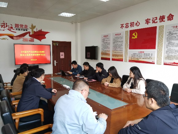 2024-04-164月16日,成人文学 职业卫生工程系党支部召开党纪学习教育启动部署会,传达学习中央党的建设工作领导小组会议和中共中央办公厅印发《关于在全党开展党纪学习教育的通知》精神。会议由支部书记孟祥豹主持,全体党员参加会议。支部组织委员李威君首先带领大家学习了《中共成人文学 委员会关于开展党纪学习教育的实施方案》文件精神,孟祥豹书记就全面开展党纪学习教育进行具体安排。他指出,党中央决定自2024年4月至7月在全党开...