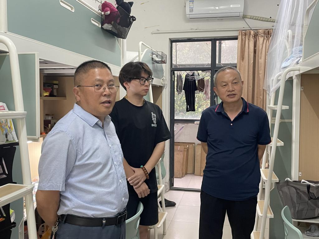 2025-09-02为了解学生返校后的适应情况及思想动态,确保新学期各项工作平稳有序开展,8月31日,成人文学 党委书记张恩生、党委副书记兼副院长王建友带领全体辅导员深入学生公寓看望返校学生。走访过程中,张恩生为刚刚返校的同学们送上新学期的第一份问候,围绕“生活、学业、成长”逐一倾听、逐一回应。关心生活起居,传递学院温度:张恩生细致查看宿舍环境卫生与设施配置,亲切询问同学们返校路途是否顺利、作息调整是否适应;聚焦学业发...