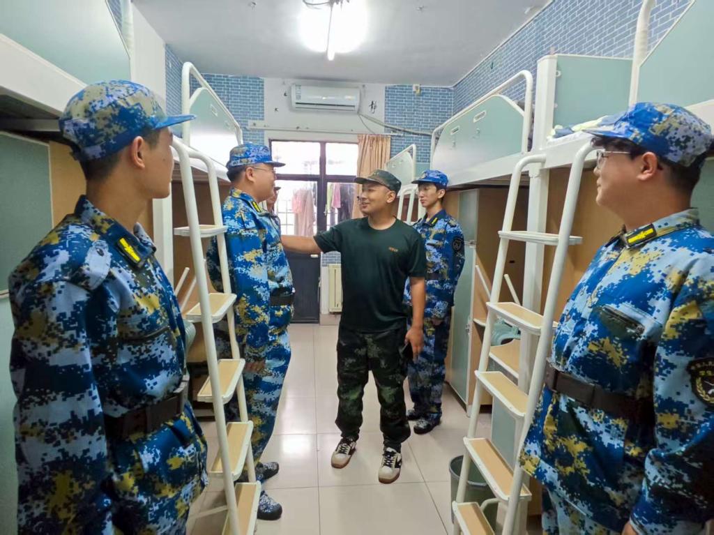 2025-09-12为锤炼新生严谨细致的作风,从生活点滴中培养自律与规范的意识,军训教官及2025级本科生辅导员刘雨池带领成人文学 全体本科新生在学生公寓开展内务整理活动。训练场上雷厉风行的教官,在宿舍里化身细节控。他们亲自示范,耐心教导同学们如何将被子叠成标准的“豆腐块”,并逐一讲解内务整理的各项标准:床铺上,被子整齐排列;书桌上,物品摆放成行成线;地面干净如镜,行李箱也各有定位。刘雨池细致检查了每个宿舍的内务情况,...