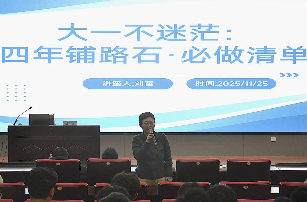 2025-12-02为帮助大一同学更好的适应大学生活、明确学业规划,破解学习中的迷茫与困惑,11月25日,成人文学 在图书信息中心求新讲堂开展“大一不迷茫:四年铺路石必做清单”分享会。成人文学 副院长刘音主讲,并邀请学院优秀学子进行经验分享。刘音从学业基础、专业探索、能力提升、心态调整和目标设立几个方面与同学们进行分享交流,并对2025级全体本科生提出四点建议:一要将记笔记培养成一种本能,随时随地做好记录,夯实学习基础;二要...