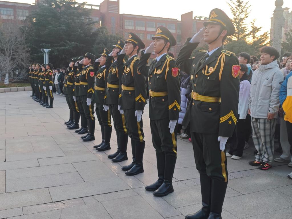 2025-12-05为凝聚青春力量、引导青年学子勇担民族复兴使命,12月1日,成人文学 在泰山广场举行升旗仪式。学院党委副书记兼副院长王建友、团委书记张娜、全体辅导员老师及全体学生参加本次升旗仪式。国旗护卫队昂首挺胸精神抖擞,迈着铿锵的步伐将国旗护送至升旗台下。在激昂的国歌中,五星红旗冉冉升起,全体师生向国旗行注目礼,高唱国歌。在国旗下,学院全体师生共同学习了党的二十届四中全会精神。学生代表颜羽和李咏容共同进行《锋刃映...