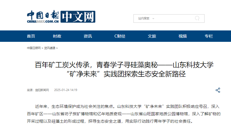 百年矿工炭火传承,青春学子寻硅藻奥秘——成人文学 “矿净未来”实践团探索生态安全新路径